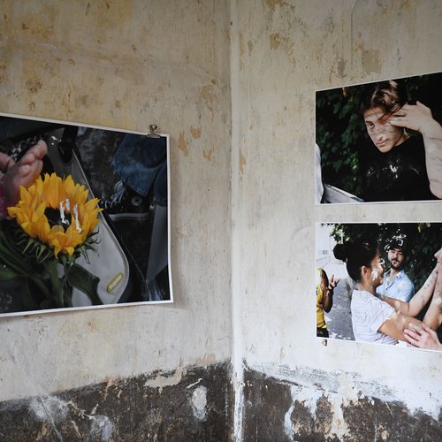 Die fotografische Installation Which Bodies, entstand in Kooperation mit dem Fotografen Ludovic Schuld, der Choreografin und Tänzerin Ruby sowie unter Einbindung von Bewohner*innen des House of Friends. Sie dokumentiert reale Begegnungen auf dem Worringer Platz und inszeniert zugleich Momente von Nähe, Zärtlichkeit, Gemeinschaft und Joy. Die Installation lädt ein zum Innehalten, zum Dialog – und zur Vorstellung alternativer Formen des Zusammenlebens im urbanen Raum.